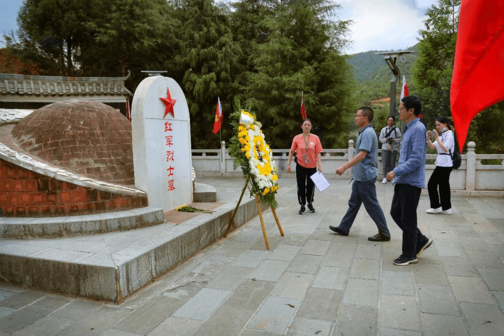 活动的第一站是先锋六甲之战纪念园,深入了解了红二、六军团通过"六甲之战",粉碎敌军围歼计划的重大革命历史事件。在六甲之战纪念碑前,文学院毛志荣书记和李立院长向革命烈士敬献花篮,全体教师肃立默哀,表达对牺牲先烈的崇高敬意和无限哀思。