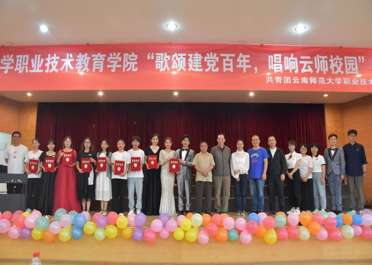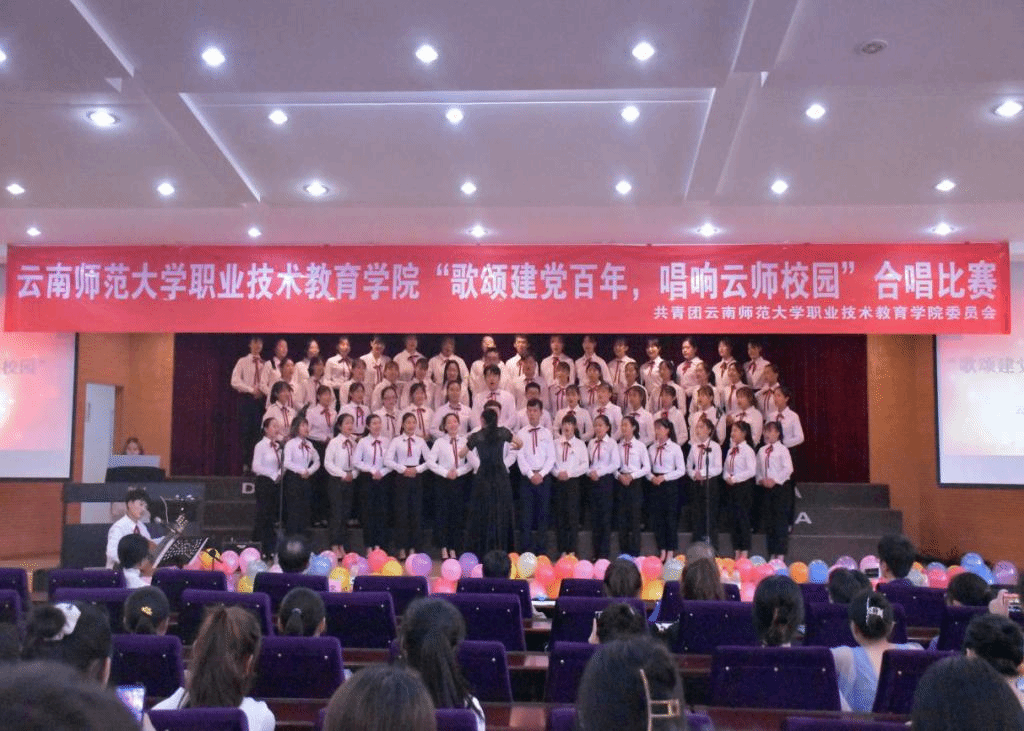 为庆祝中国共产党成立100周年,激发同学们爱党爱国爱校的热情,6月6日下午,职业技术教育学院团委在一二一西南联大校区田家炳教育书院报告厅举办“歌颂建党百年,唱响云师校园”合唱比赛。本次比赛邀请到中国音乐家协会会员(作曲家)唐天尧、云南文化艺术职业学院教学总监王蒙、云南大学昌新国际艺术学院青年教师戴静、云南文化艺术职业学院声乐教师廖今以及学院团委书记刘东东老师担任评委。