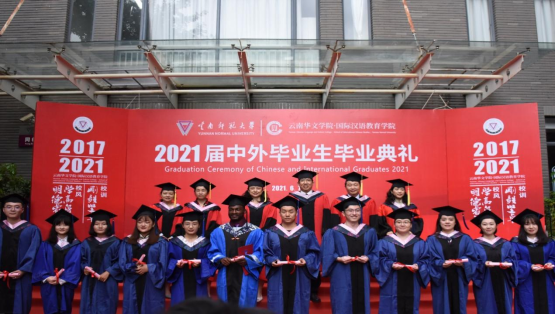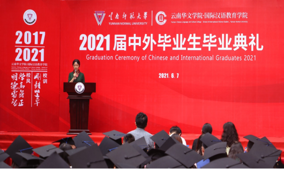 6月7日上午,云南华文学院、国际汉语教育学院在同析2栋正门广场举行了2021届中外毕业生毕业典礼,全体院领导、学院学位评定委员会委员、系主任、辅导员、2021届中外毕业班班主任及全体中外本硕毕业生参加了毕业典礼。典礼由学院党委副书记常数主持,同时,通过腾讯会议、钉钉等平台向国外全体留学生毕业生直播典礼。
