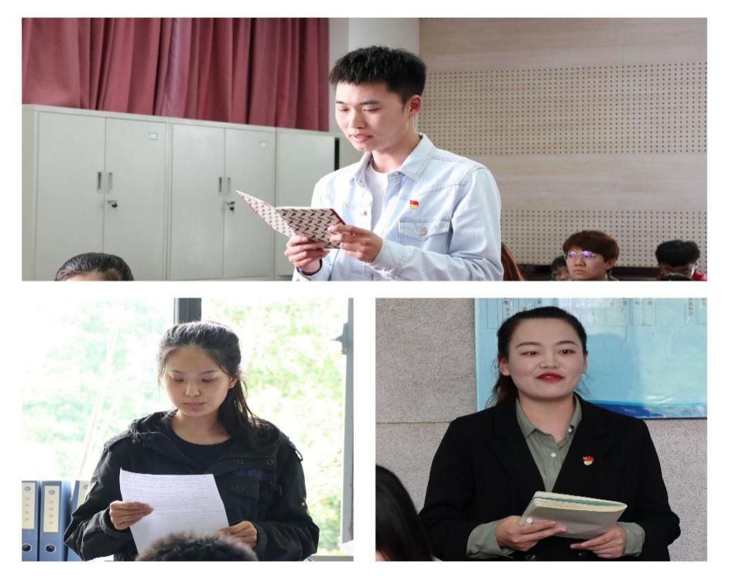 研究生第三党支部书记刘照同志表示,“崇尚英雄才会产生英雄,争做英雄才能英雄辈出。”要向优秀的老党员同志学习,学习他们矢志不渝、初心不改的精神;学习发扬他们信念坚定、艰苦奋斗的精神,像他们那样埋头苦干、担当奉献,像他们那样去奋斗,永葆共产党人的政治本色。三位学生党员代表也依次发言,表达了紧跟前辈步伐,传承红色基因,做一名合格的共产党员的决心。