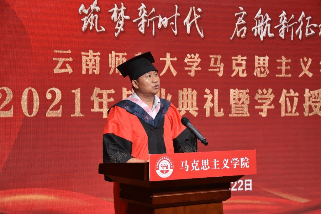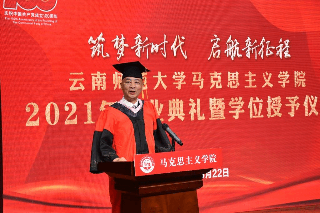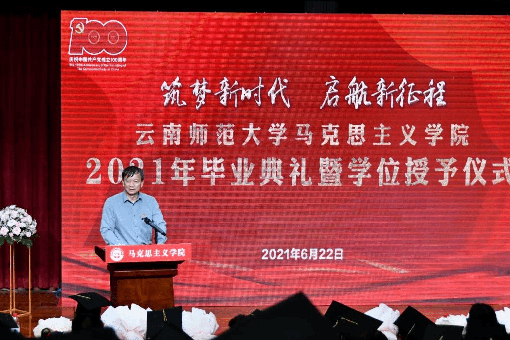 毕业典礼是马克思主义学院立德树人中最重要的环节,学院通过隆重的毕业典礼,进一步加强毕业生的思想教育,增强毕业典礼的仪式感,上好毕业生的“最后一堂课”,激发毕业生爱校荣校、感恩奉献和成才报国的热情。在中国共产党成立100周年的这个伟大历史时期,学院希望借此机会,引导每一位毕业生和在校生坚定信念,探求真理,志存高远,将个人命运与国家民族的命运紧密地联系在一起,担负起时代的责任和历史的使命。