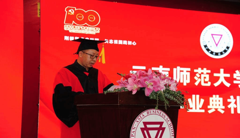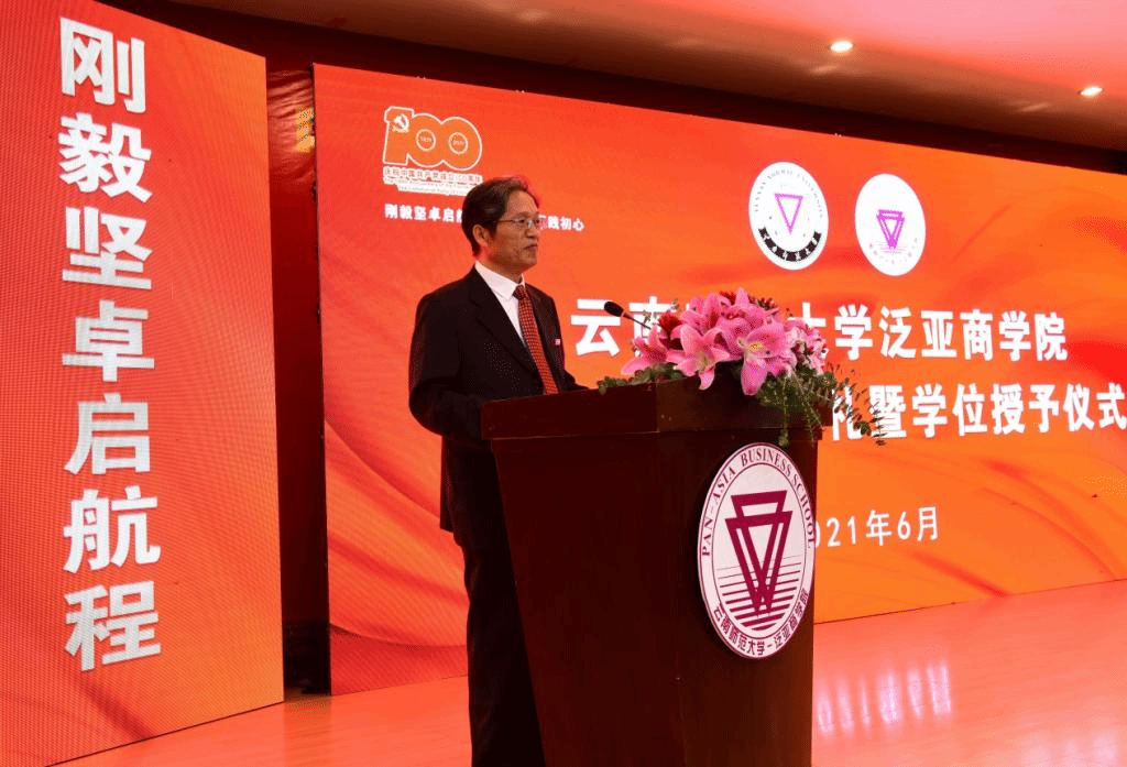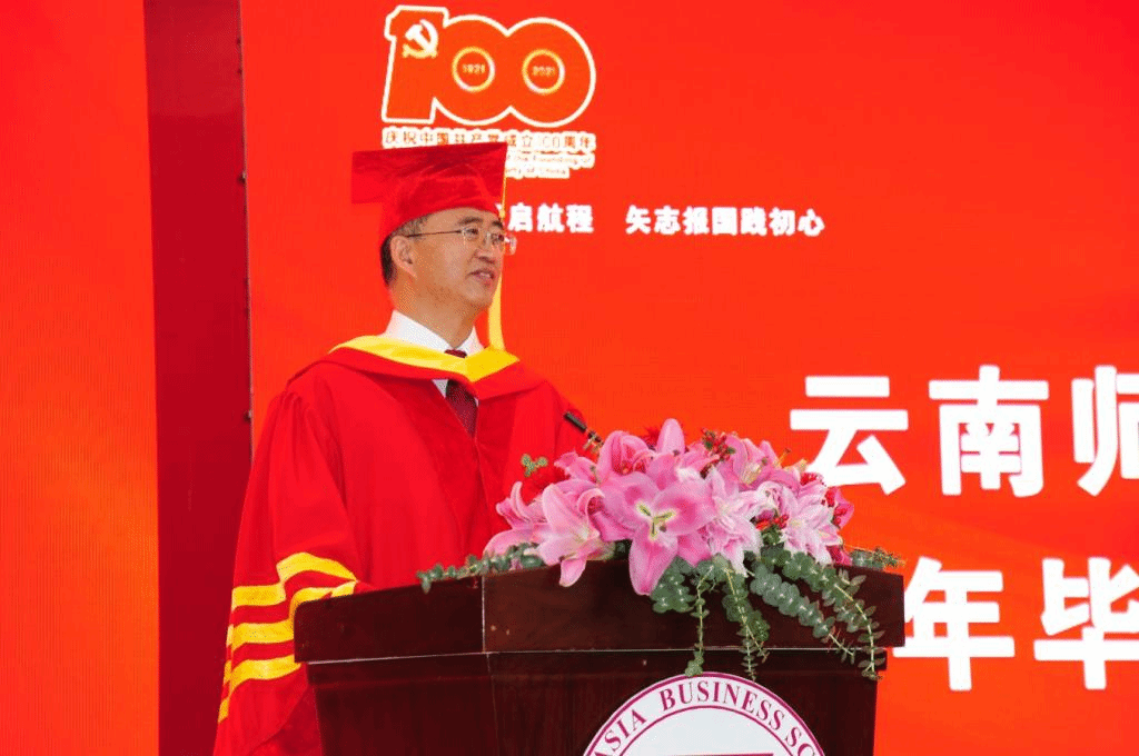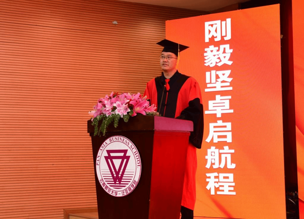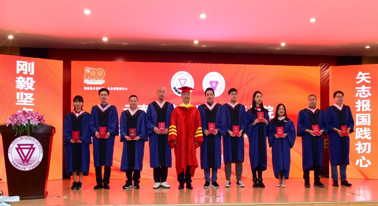 刚毅坚卓启航程,矢志报国践初心。6月26日,泛亚商学院2021年毕业典礼暨学位授予仪式在一二一校区田家炳报告厅举行。校长蒋永文教授、校长办公室主任杨洪副教授、研究生院院长骆华松教授、研究生处处长黄海涛教授、学院全体领导班子成员、研究生导师、教师、2020届及2021届共150名毕业生代表参加了典礼。
