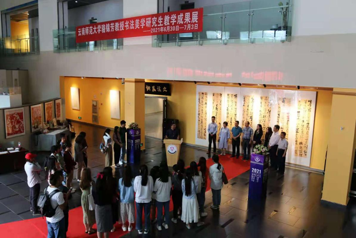 6月30日上午,文学院骆锦芳教授书法美学研究生教学成果展开幕式在美术学院一楼文溪美术馆举行。校党委副书记李宏、云南中医院大学宣传部部长杨盼、中烟集团研究员段宁东出席开幕式。研究生处处长黄海涛、美术学院党委书记包绍红、音舞学院党委书记和红军、科研处副处长刘连杰、文学院领导班子以及云南各学界同行参加了开幕式。开幕式由文学院党委书记毛志荣主持。