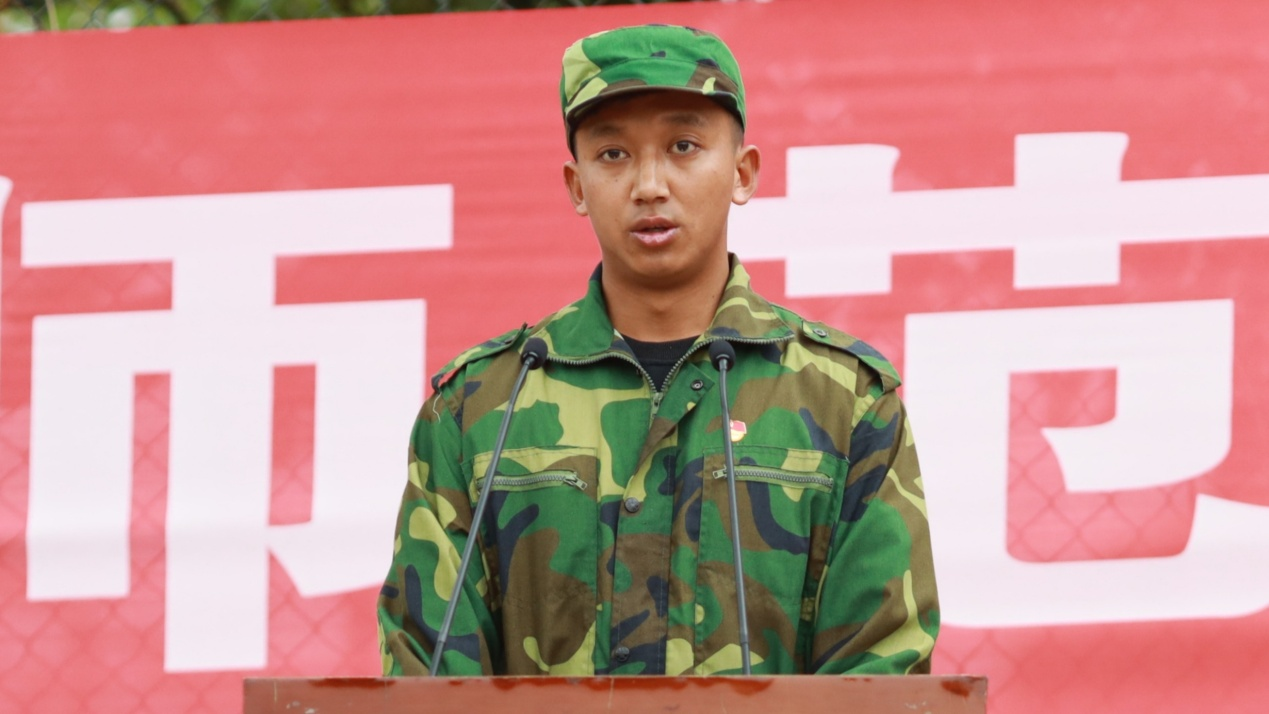 一二一西南联大校区一连军训优秀学员代表奎俊宏同学在发言中表示,要把军训学到的优良作风带到今后的学习生活中,继续弘扬西南联大爱国主义精神,用青春热血在实现国家第二个百年奋斗目标的路上拼搏奋斗。