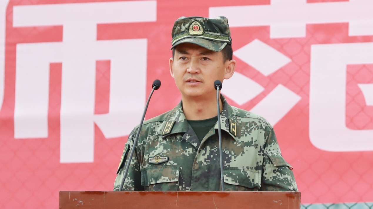 许韬副支队长代表承训方讲话。讲话中许韬副支队长总结了军训期间同学们的良好状态,肯定了同学们积极配合教官工作,服从命令、听从指挥、团结进取、奋勇争先,在短暂的时间里,取得了瞩目的成绩和进步。同时激励同学们深入学习贯彻党中央的强军思想,练就过硬本领,时刻准备着为祖国建功立业。