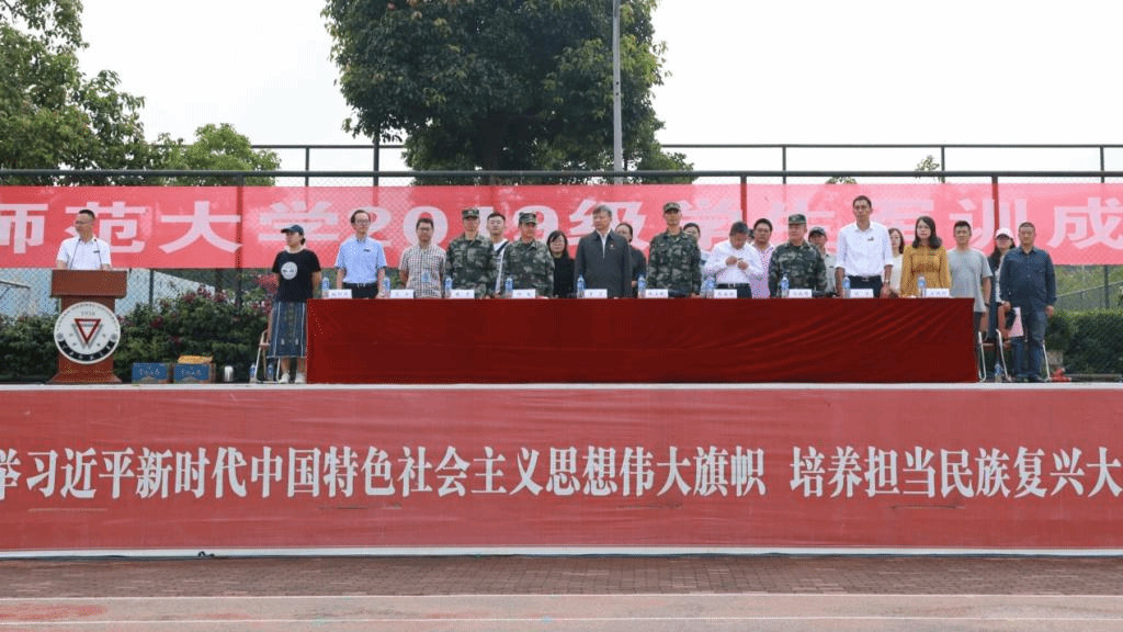 7月18日上午,云南师范大学2019级学生军训成果汇报在呈贡主校区西区田径场和一二一西南联大校区田径场同时举行。学校党委副书记李宏、副校长牛治亮、副校长蔡金红,武警云南总队机动第一支队上校支队长张定乾、中校副支队长许韬、中校副政治委员张彦、中校政治教导员冯俊辉、宣传保卫股股长马李恒、90名承训部队教官、学校军训工作领导小组、各学院党委副书记、带训教师以及2019级全体参训学生参加了军训成果汇报。