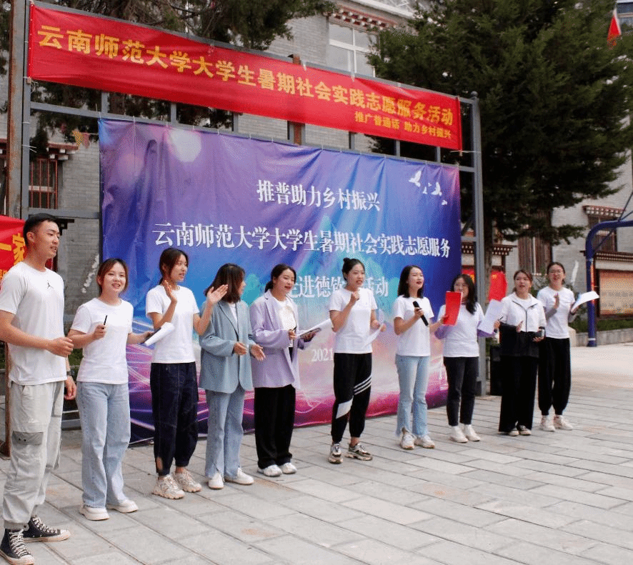 7月21日至22日,由云南师范大学国家语言文字推广基地组织、传媒学院师生组成的“推普助力乡村振兴”全国大学生暑期社会实践志愿服务团队赴迪庆州德钦县升平镇,对当地群众开展推广普通话志愿服务。
