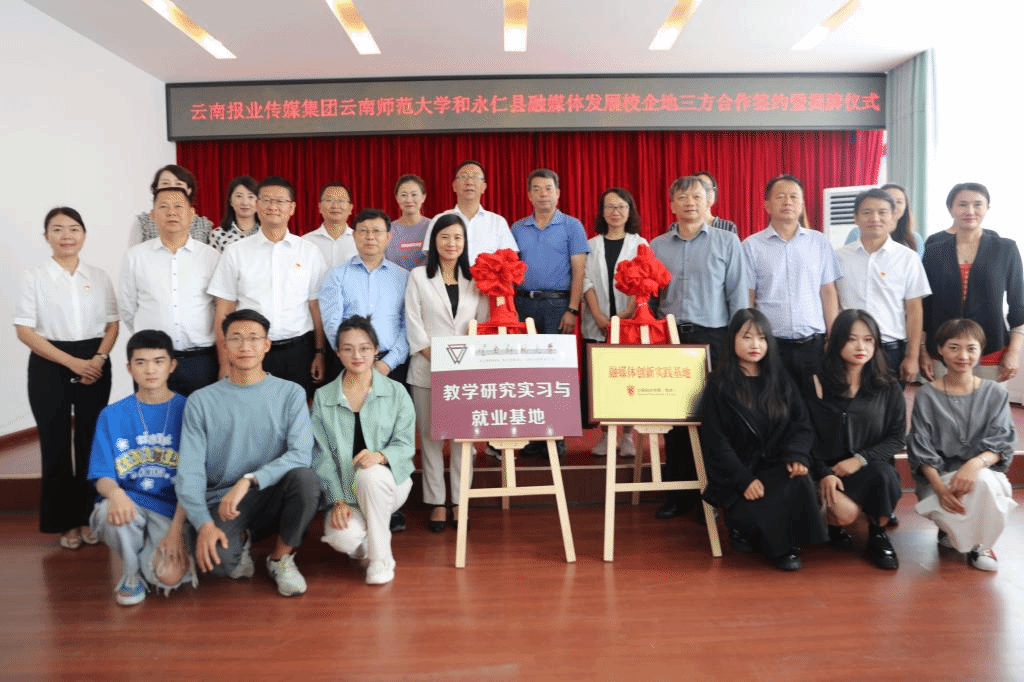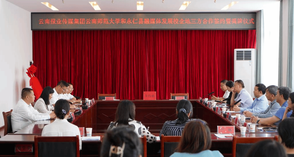 7月29日,云南报业传媒集团、云南师范大学和永仁县融媒体发展校企地三方合作签约暨揭牌仪式在永仁会堂三楼举行,“云南报业传媒(集团)有限责任公司融媒体创新实践基地”“云南师范大学传媒学院与永仁县融媒体中心实践教学基地”正式落地永仁县融媒体中心。