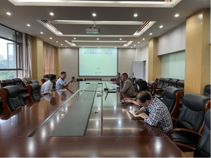 2021年8月17日下午,王德强校长到数学学院调研,实地参观了数学学院院史展陈室,并与学院全体班子座谈。