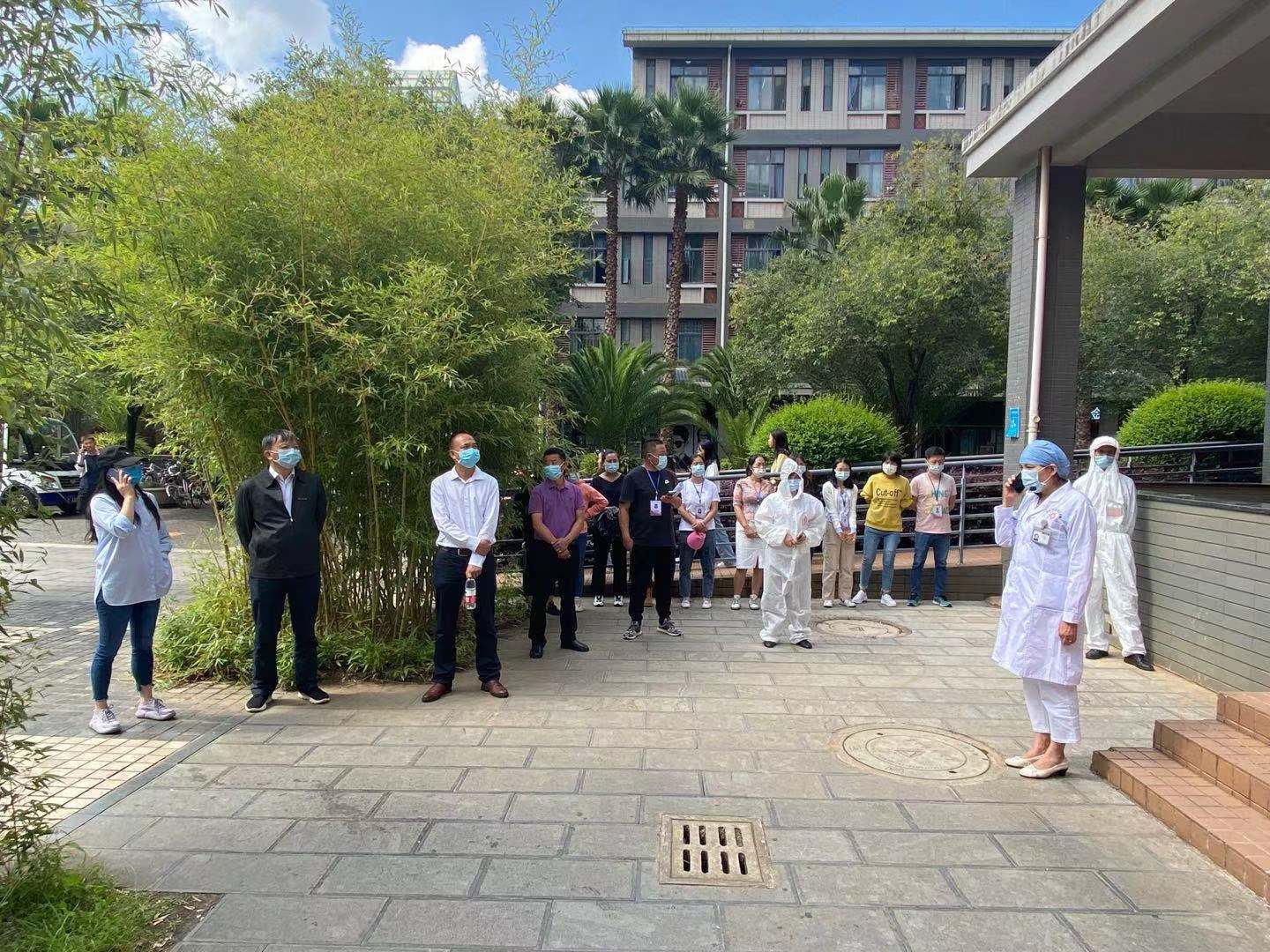 为进一步规范新冠肺炎疫情防控工作,检验疫情突发后防控应急预案的可操作性,增强各部门之间的协同配合,有效保障师生员工的生命安全和身体健康。 9月10日下午,在学校防控办的统筹协调下,我校在呈贡校区开展应对新冠肺炎疫情防控应急处置演练。校党委副书记李宏,呈贡区疾病预防控制中心主任孙继福现场观摩指导,防控办、学生处、保卫处、后勤保障服务中心、心理中心、校医院、经济与管理学院师生参加演练。