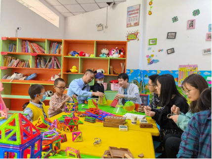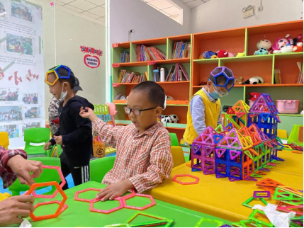 活动伊始就吸引了众多社区居民带领孩子前来参与。科普基地讲解员积极认真地向前来参加活动的群众讲解经典数学模型,鼓励孩子们发挥想象力,实际动手拼接各种模型,体验各类数学益智游戏。