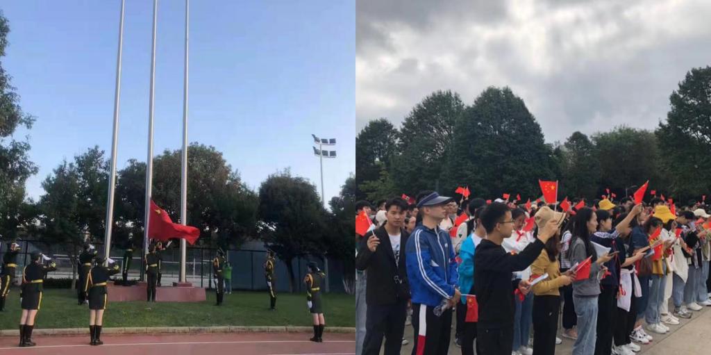 10月1日早上,普天同庆、喜迎国庆之际,嘹亮的国歌声在校园响起,学校举行庄严的升国旗仪式,向伟大祖国献礼。研究生处和校团委在呈贡校区红烛广场举办“迎国庆,健步走,畅游园”活动,同学们完成“党史竞答”“名人竞猜”“游园活动”等关卡,最后齐声高歌“歌唱祖国”,用最热情洋溢的笑容喜迎国庆。与此同时,众多师大学子在国庆黄金周中,仍在各自的岗位上、计划中或书桌前,践行“刚毅坚卓”的校训精神,以奋斗的姿态向祖国明志,为未来添彩。