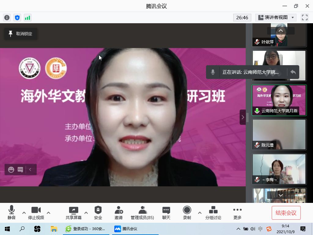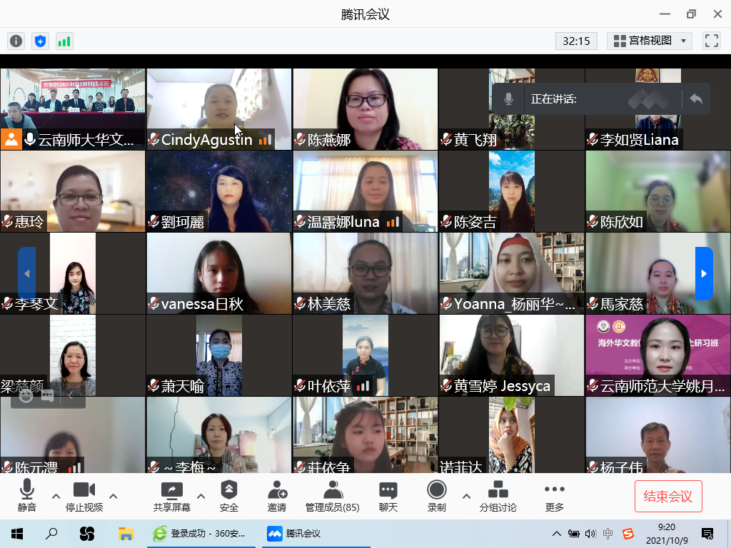 10月9日上午,由国务院侨务办公室主办,我校云南华文学院承办的2021年海外华文教师教学技能线上研习班开班仪式在线上顺利举行。来自印度尼西亚16个省、68所学校的138名华文教师参加了开班仪式。