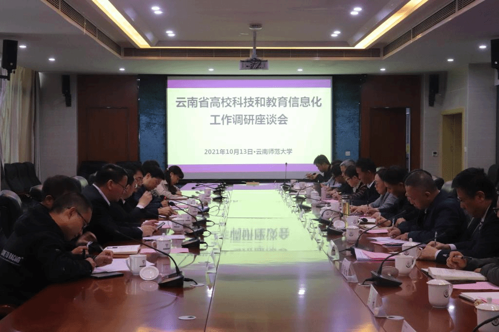 调研组一行到我校中国西南地缘环境与边疆发展协同创新中心和民族教育信息化教育部重点实验室调研,深入了解学校重点科研平台建设、科学研究情况和科研创新工作进展。 随后,在能环学院会议室召开云南省高校科技和教育信息化工作调研座谈会。会议由省教育厅王云霏厅长主持,省教育厅有关部门负责人以及在昆本科院校主管科技工作副校长、科技处负责人参加了座谈会。云南师范大学郝淑美副校长、云南农业大学李彤副校长、昆明医科大学李利华副校长分别围绕各校对国家重大战略取得的重大科技成果进行了汇报。
