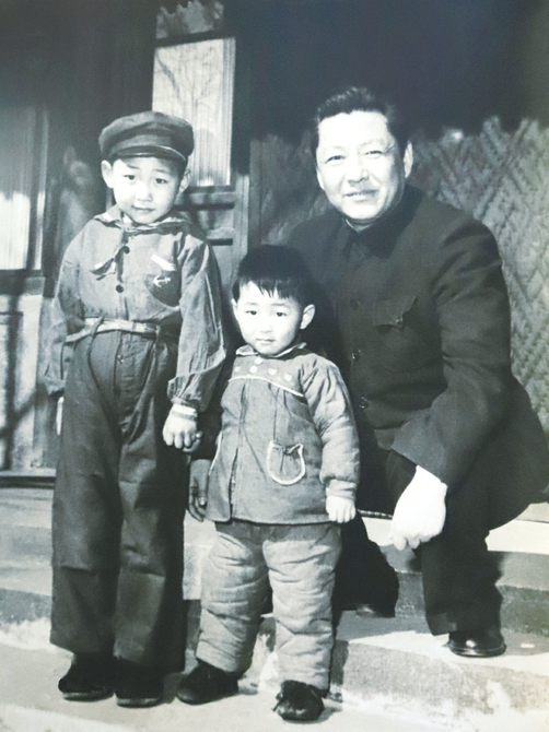 1958年,习仲勋(右)与习近平(左)、习远平在一起