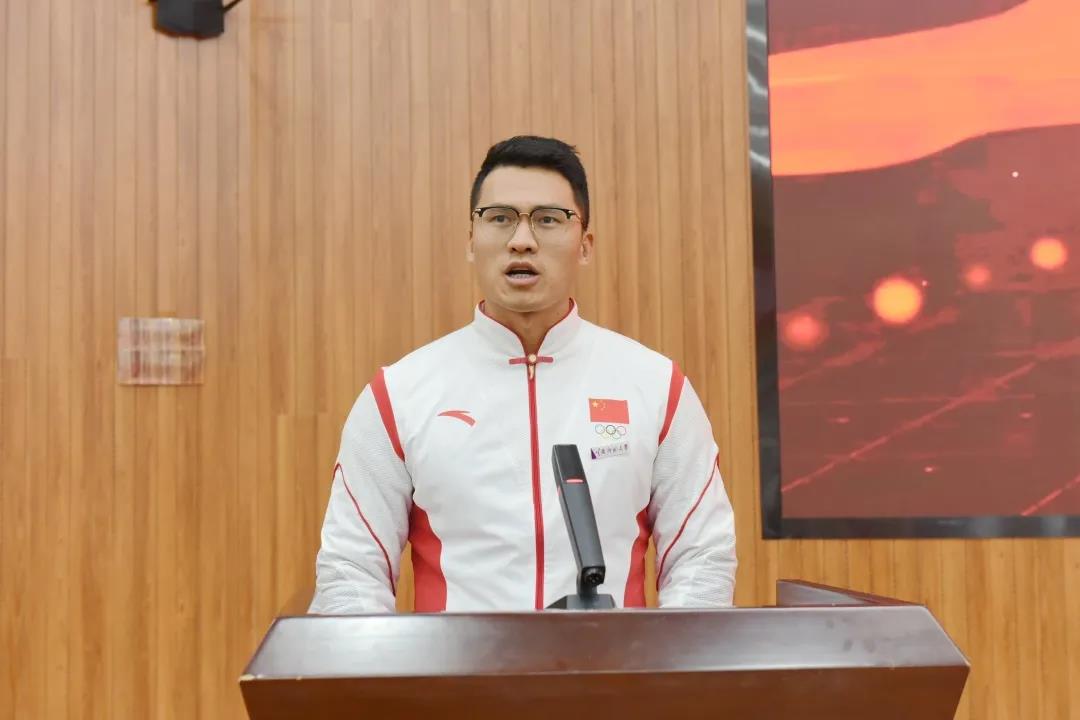 东京奥运会皮划艇男子1000米单人划比赛亚军、双人划比赛亚军,第十四届全国运动会皮划艇男子1000米单人划亚军、双人划冠军,2016级运动训练本科生刘浩发言。他分享了自己在无数个寒冬酷暑,无数次执桨破浪,无数回心理对抗中,克服挫折伤病、坚持皮划艇训练的个人成长经历。他说:“今天我能够获得这样的成绩,要感谢国家的培养,感谢家人和教练的支持与陪伴,感谢母校云南师范大学的栽培。今后我会将这份感谢化作行动,继续秉承‘刚毅坚卓’的精神,不断挑战体能与意志力的极限,为祖国争取更多的荣誉!”