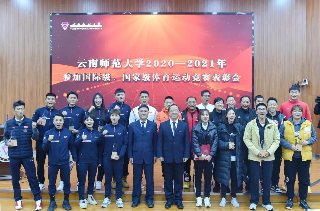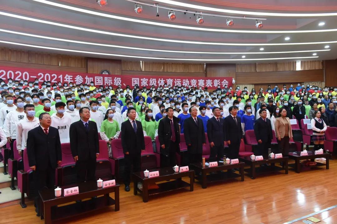 10月22日下午,在喜庆热烈的氛围中,云南师范大学2020-2021年度参加国际级、国家级体育运动竞赛表彰会在呈贡主校区汇学2幢报告厅举行。校领导、体育运动委员会委员单位主要负责人,全体受到表彰的运动员、教练员代表以及各学院师生代表参加了表彰会。会议由副校长牛治亮主持。
