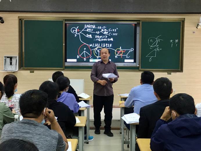 由孔德宏老师作了题为《改变(改造)我们的数学教育教学》的讲座。他指出教学中较为普遍的问题:研究教材不过关、专业素养不达标、对高考研究不够等,并提出了解决的策略:多阅读与学科相关的书籍;多投入时间在教学研究上;优化运算素养;研究真题,感悟命题思路等,特别强调在教学中一定要注意不能参杂不良的西方文化教育。他指出,育人在教学中,教学在育人中。