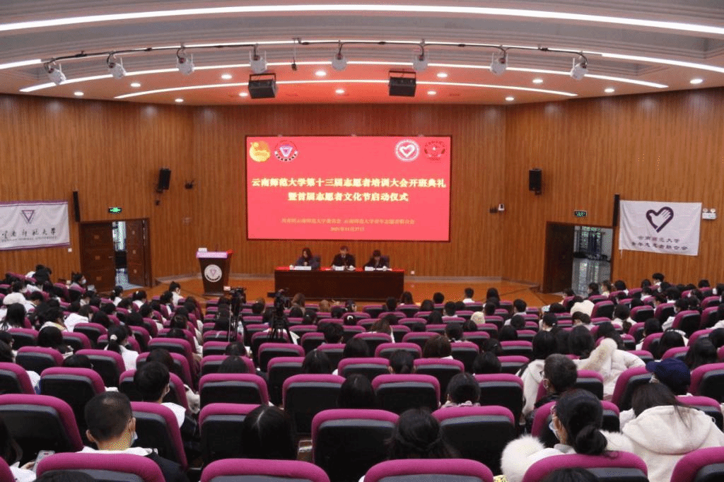 2021年11月27日上午,由校团委主办、校青年志愿者联合协会承办的云南师范大学第十三届志愿者培训大会开班典礼暨首届志愿者文化节启动仪式在呈贡主校区汇学二栋101报告厅举行。校党委副书记李宏、校团委书记郑伟俊,全体学生志愿者参加仪式,仪式由校团委副书记曹逸凡主持。