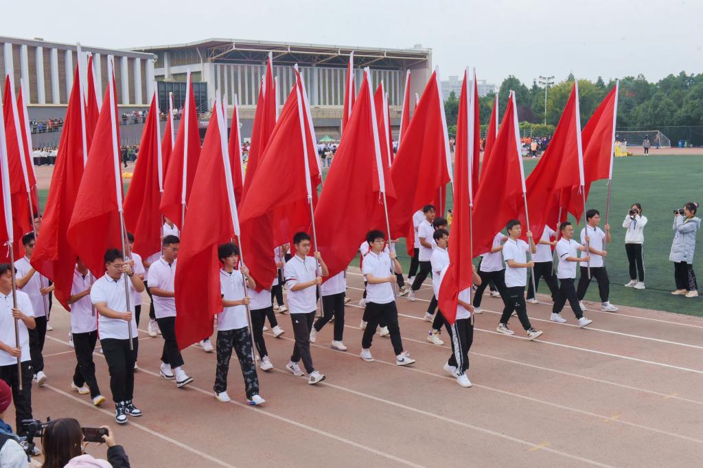 国歌奏响,在全场的注目下,五星红旗冉冉升起,在体育场上空飘扬。随后,校长王德强致开幕词。王德强校长向为筹备体育节付出辛勤劳动的全体师生员工表示感谢,向全体运动员、裁判员、志愿者致以问候。王校长指出,近年来,学校贯彻落实习近平总书记关于体育的重要论述精神,紧紧围绕“发展体育运动,增强人民体质”的方针和任务,不断加强体育教育,弘扬体育精神,尤其注重把开展校园体育运动、增强师生员工体魄作为落实立德树人根本任务的重要抓手,培养的运动健儿们在各类体育赛事上取得了一系列优异成绩,为建设体育强国、实现中华民族伟大复兴的中国梦做出积极贡献。他希望广大师生员工以体育节为契机,培养健康身体、练就强健体魄,做到德智体美劳全面发展;希望参赛选手弘扬“更高、更快、更强”的体育精神,努力赛出风格、赛出水平、赛出友谊;希望全体裁判员做到公平、公正、公开;希望全体工作人员高度负责、忠于职守,树立安全第一和热情服务意识,将本届体育节办得更加出色、出彩。