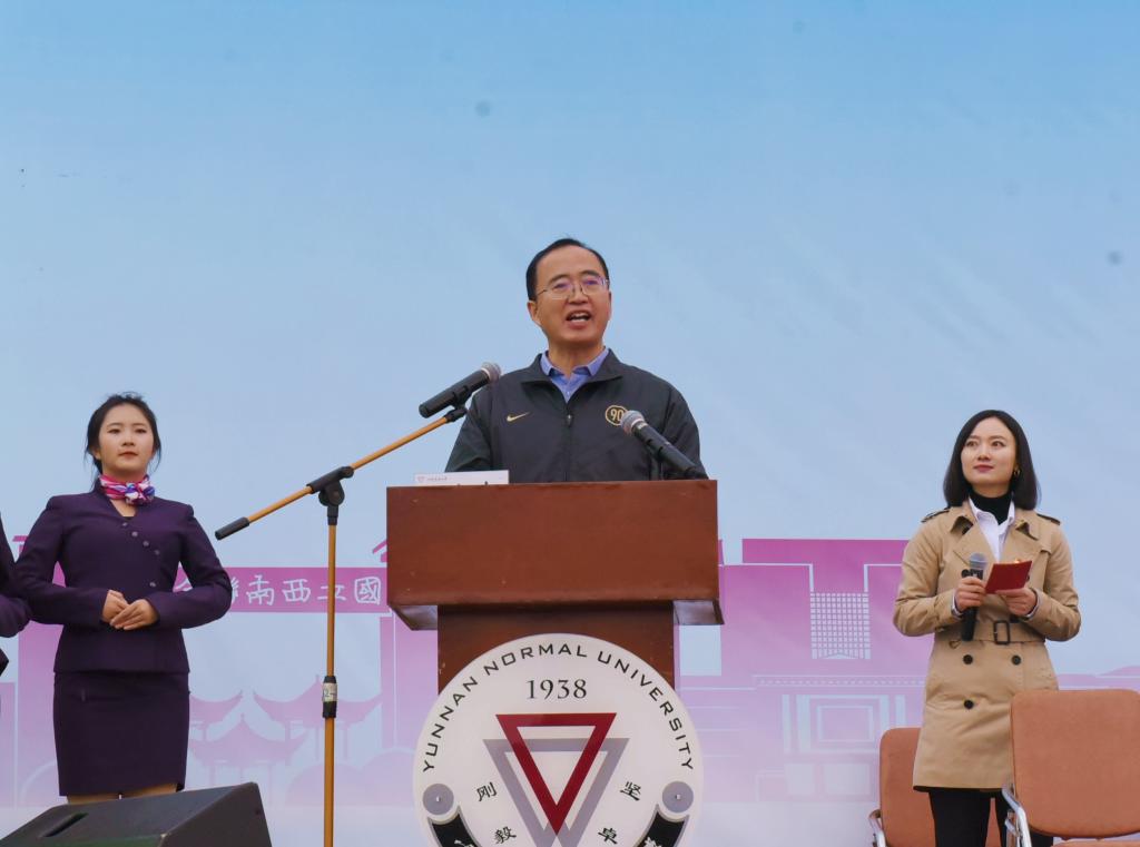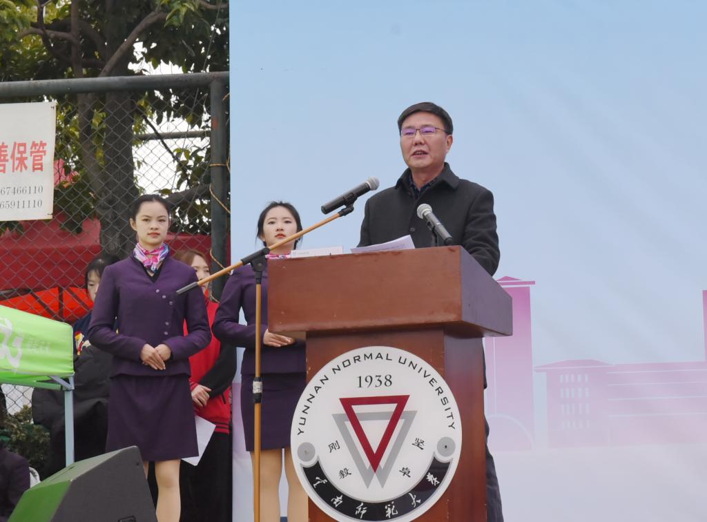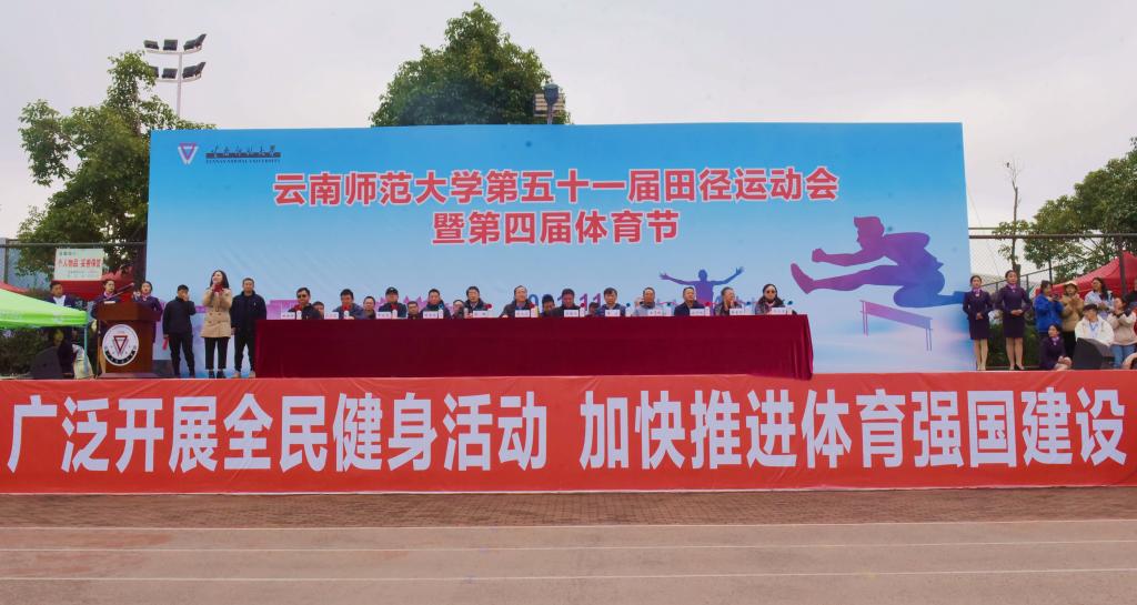 冬风击起千声鼓,号角吹响青春梦,11月18日上午,云南师范大学第五十一届田径运动会暨第四届体育节在呈贡主校区启园体育场开幕。全体校领导以及各职能部门、各学院负责人出席开幕式。体育场上红旗飘扬,热情洋溢,气氛热烈。