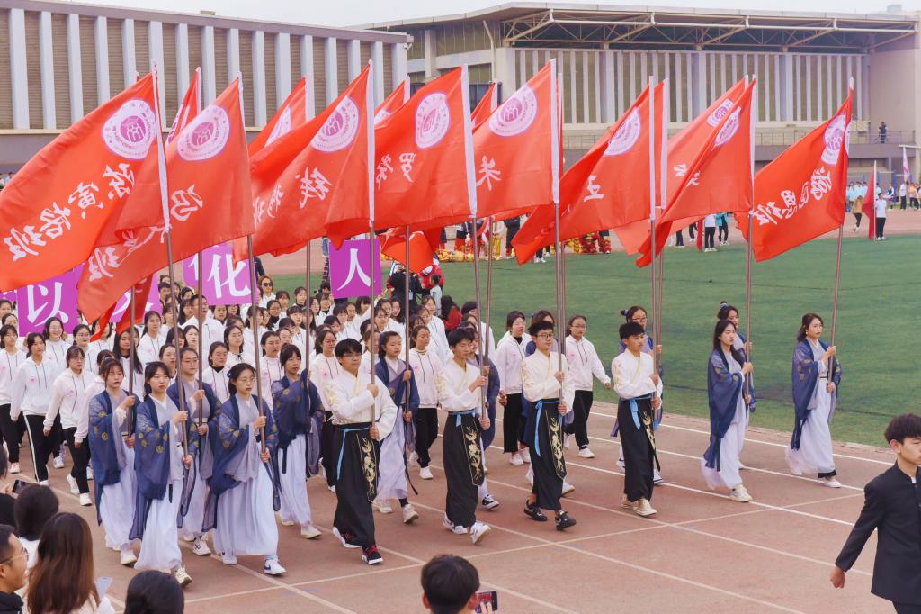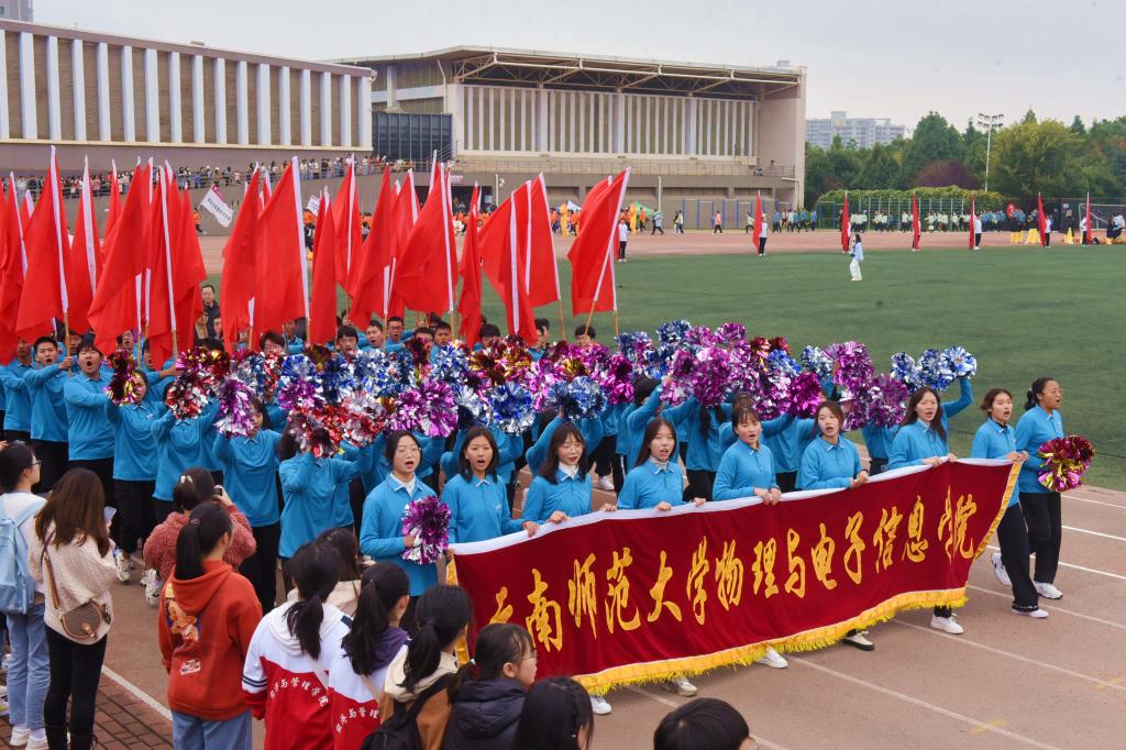 “信息信息、生生不息,不忘初心、砥砺前行”,信息学院师生喊着响亮的口号阔步前行;“以文化人,明德立行,扬帆起航,乘风致远”,身着汉服的文学院学子展示着儒雅的君子风范;以国际化办学为特色的华文国语学院方阵中,留学们脸上洋溢着自信的笑容,展示着他们锐意进取的朝气;“‘地’承千古,‘理’蕴人文,笃学力行求实路,厚积薄发地理人。”手持地球仪,手拿导游旗,矫健的步伐彰显地理学子青春的活力;“传播风尚,构筑和谐,以心为媒,沟通天下”,传媒学子用新闻传递态度,用相机记录生活,用话筒传播能量;外国语学院方阵中出现四个可爱的卡通人偶,他们用年轻的心诠释了团结就是力量、拼搏终会成功的体育精神;“以潜心科研为画笔,以广袤星空作画卷,用科学技术筑牢强国梦!”能环学院方阵手持向日葵,迈着整齐划一的步伐,昂首阔步地走过主席台,展现了学院团结、拼搏、向上的精神风貌;“‘音’为有你,‘舞’比温暖,用音乐舞蹈诠释运动之美”,音乐舞蹈学院学子步伐矫健、口号嘹亮;“向美而行,美美与共”,美术学院师生诠释了他们对真理和美的追求;“勇担重任,无悔奉献,做师生健康的守护者!”精神抖擞、英姿飒爽,身着白大褂的校医院方队,展现了白衣天使昂扬进取、团结拼搏的良好精神风貌。别样的风采,高昂的斗志,各方阵以不同的形式展现各自特色和青春风采,赢得现场观众阵阵喝彩。
