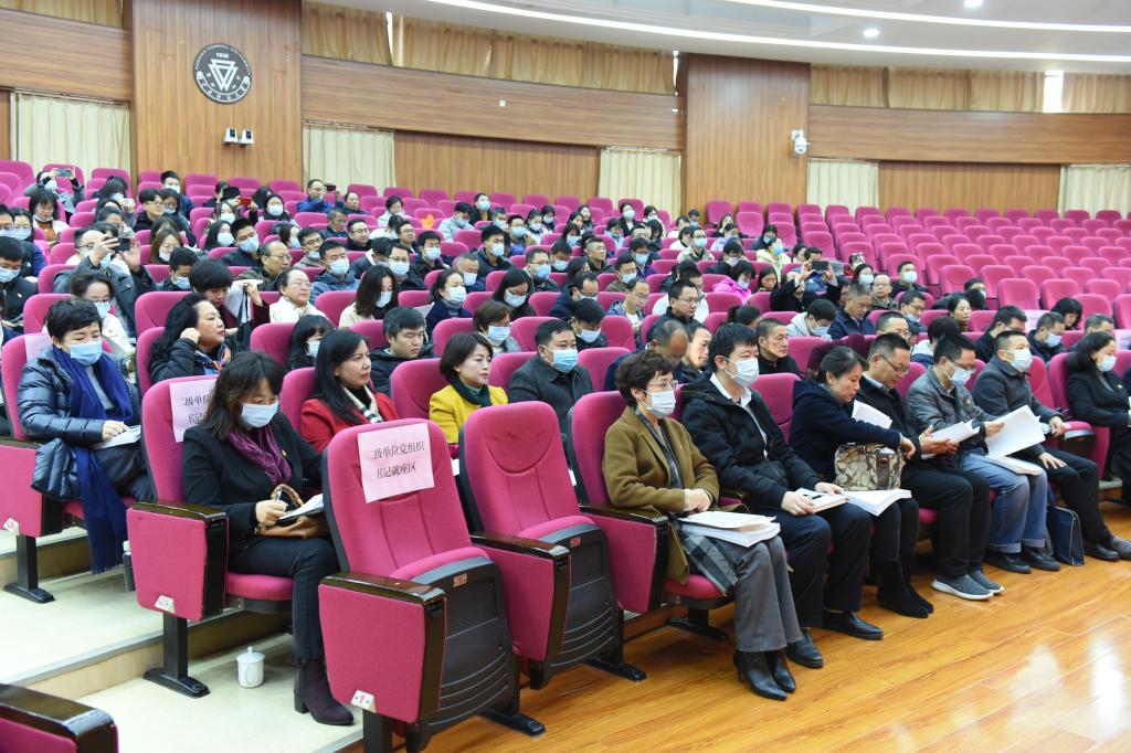 为深入学习贯彻习近平新时代中国特色社会主义思想,坚持和加强党的全面领导,推动学校各二级单位党组织书记履职尽责抓党建,落实管党治党政治责任,推进全面从严治党向基层延伸, 12月17日,我校开展2021年度学校二级单位党组织书记抓基层党建工作述职评议。校党委委员,相关职能部门主要负责人,各单位党委、党总支、直属党支部书记、副书记,熟悉基层党建工作的党代会代表、人大代表、政协委员、党务干部、师生党员和群众代表等170余人参加会议。会议由校党委书记蒋永文主持。
