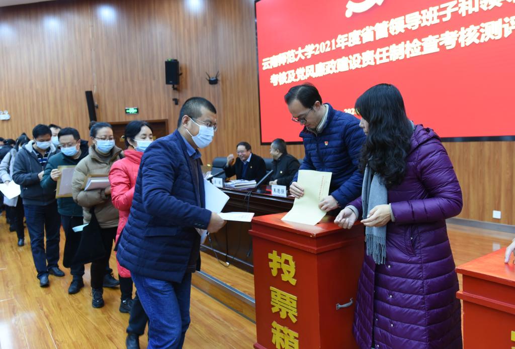 在听取学校领导班子和领导干部个人述职述廉报告后,全体参会人员认真填写民主测评表,对2021年度学校领导班子和领导干部的履职情况、落实党风廉政建设责任制工作、学校选人用人工作和新提拔干部等情况进行民主测评。