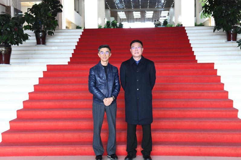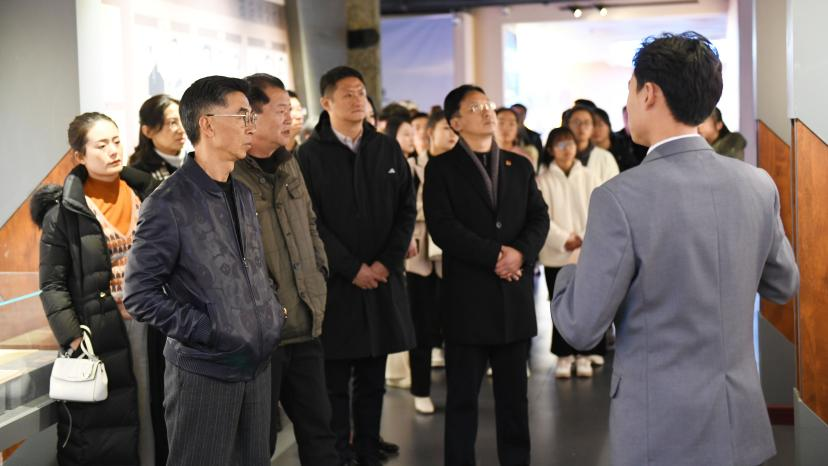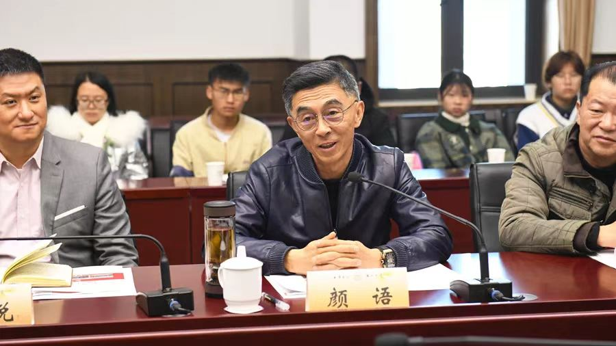 座谈会开始前,王德强校长与星耀集团董事长颜语先生一行参观校园,走进六小龄童图书阁,并与30名2021年度“星耀励学金”获得学生一同参观校史馆。