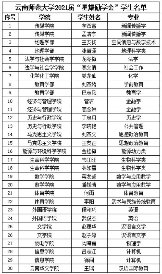 星耀于宇,泽及于人。星耀集团关注关心我校教育发展,在我校设立“星耀励学金”,旨在为我校学子解决后顾之忧,助力学子成长成才。经过层层考察,我校共30名大一学生将获得2021年度星耀励学金。附表为2021年度“星耀励学金”受助学生名单公示。
