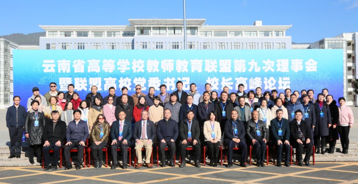 2021年12月25日,云南省高等学校教师教育联盟第九次理事会暨联盟高校党委书记、校长高峰论坛在丽江师范高等专科学校(以下简称“丽江师专”)举行。会议分为联盟第九次理事会、联盟高校党委书记校长高峰论坛、联盟高校教务处处长研讨会、联盟高校马克思主义分联盟研讨会四个部分。
