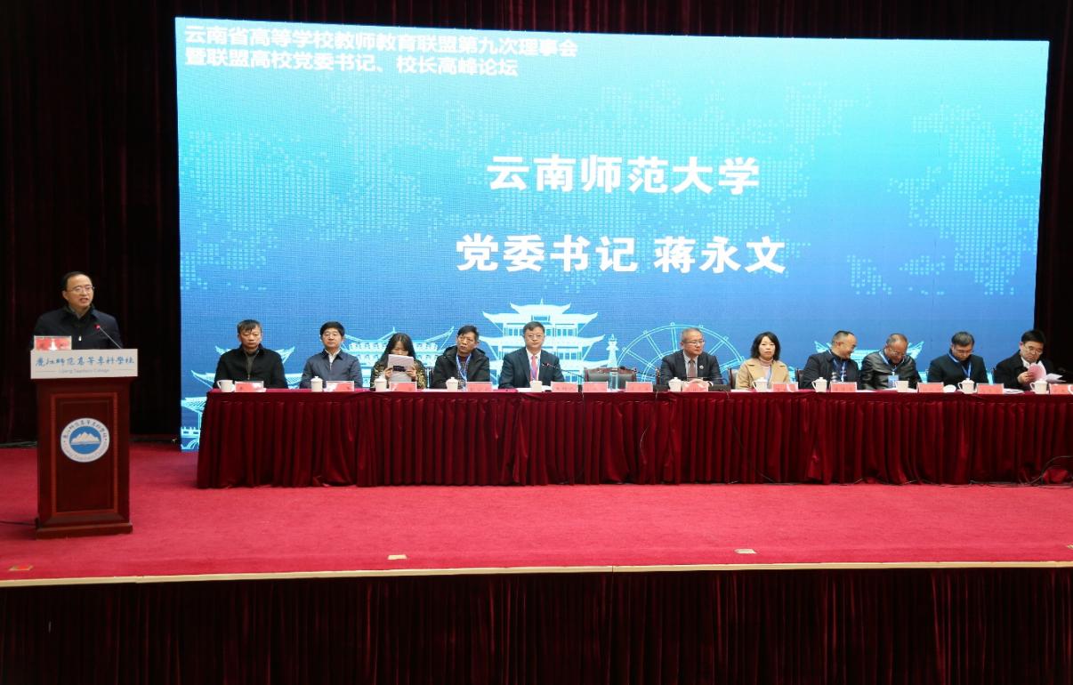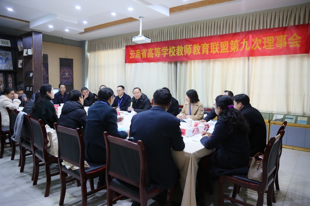 12月25日上午,云南省高等学校教师教育联盟第九次理事会在丽江师专顺利召开。联盟理事长、副理事长、理事;高等教育出版社代表;联盟秘书长、常务副秘书长、副秘书长、秘书共20人出席会议。会议由联盟理事长、云南师范大学党委书记蒋永文主持。