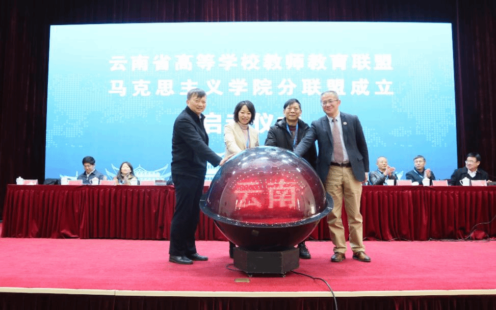 云南师范大学党委副书记李宏、昆明学院校长丁文丽、玉溪师范学院党委书记张学武、丽江师专党委书记张祖武按动启动仪式水晶球,丽江师专校长毕天云宣布云南省高等学校教师教育联盟马克思主义学院分联盟成立,之后为马克思主义学院分联盟主任委员单位、副主任委员单位进行了授牌。