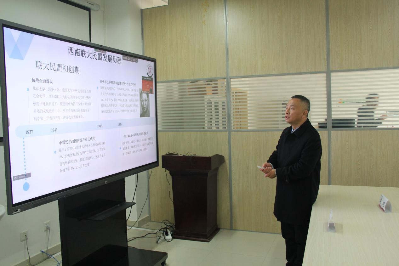 李明教授以“西南联大时期的民盟发展及传承”为题阐述了西南联大时期民盟的发展历程,改革开放后的民盟活动等,并提出新发展规划,以历史和发展的眼光做好参政议政理论研究和民盟盟史整理工作以及推进乡村振兴、长江生态环境保护(云南段)、人才联盟、“一带一路”建设等。