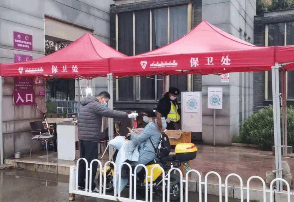 保卫处立即升级校门管理要求,严查所有出入校园车辆和人员,严守校园防疫第一道防线。加强校园安防一线的人员力量,加大校门、围栏和校内巡逻巡查力度和频率。迅速落实校园管控网格化方案,协调多部门现场核实、综合评估,合力将管理封控、法规执行等要求落到实处。