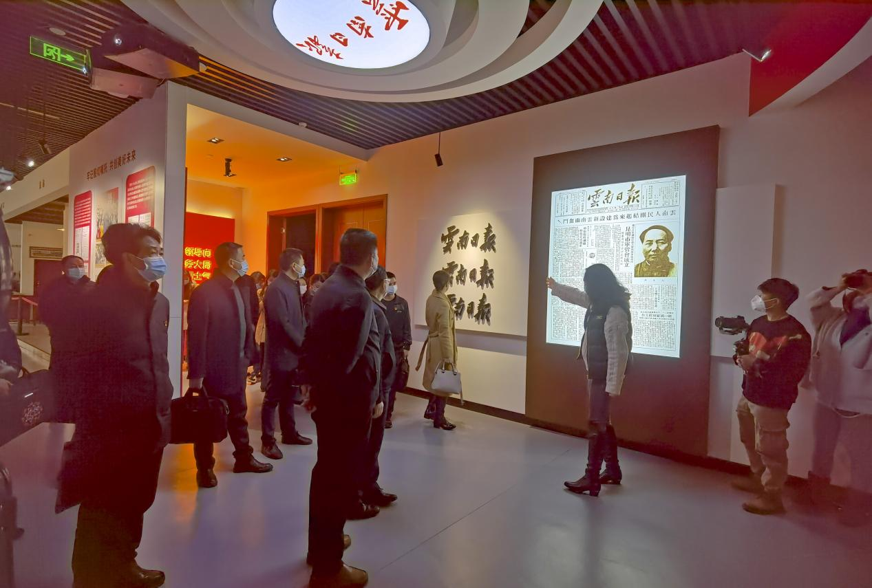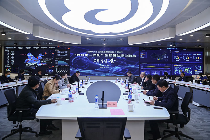 在举行签约仪式之前,楚雄州县(市)宣传部负责人、传媒学院各系负责人、云报传媒集团公司及旗下就爱去公司负责人,参加了在云报传媒广场举办的主题为“坚守初心 牢记使命 学史力行 创新驱动媒体融合 重构云南文旅新生态”主题党日活动。大家一起参观云南日报社史馆,了解云南日报报业集团71年的发展历史,集团系列报刊向现代数字化融媒体转变的历程。随后在云南日报全媒体指挥中心展开座谈,三方就如何补齐县融发展短板,如何培养现代融媒体高素质新闻传播专业实战人才,如何通过“校企地一体化”深度融合等方面展开热烈研讨。