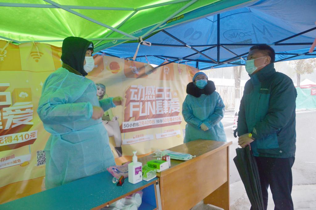 在6号门返校接待点,王校长向工作人员详细了解学生返校报到工作,关切询问学生返校时的路途情况,欢迎他们在雨雪天气中平安返校。