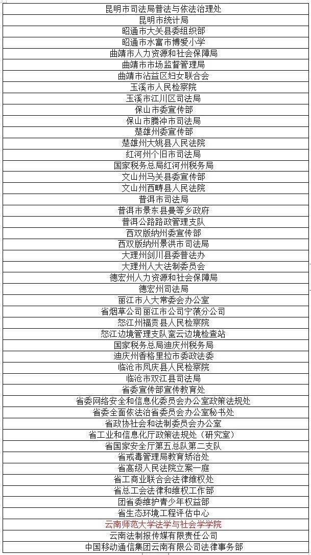 近日,云南省委、省政府印发了《关于表彰2016-2020年云南省普法法制宣传教育先进集体和先进个人的决定》,我校法学与社会学学院被表彰为2016-2020年云南省普法法制宣传教育先进集体。