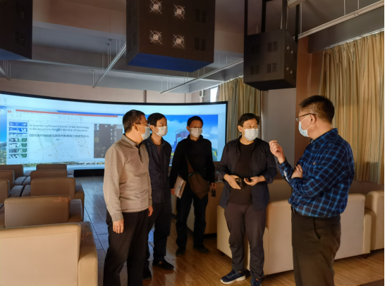 随后,王校长一行到西部资源环境地理信息技术教育工程研究中心调研建设情况。杨昆主任就工程研究中心概况、总体定位和研究方向,技术攻关进展,成果转化与行业应用等方面做了重点汇报。