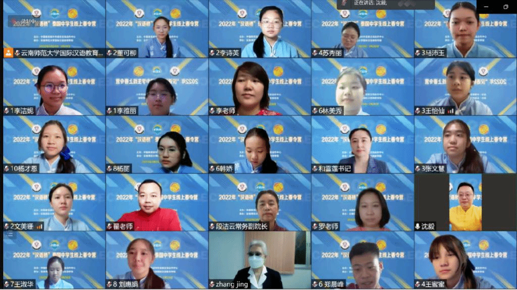 和雪莲书记对参与此次教学、管理团队的中、泰教师,以及全程参与学习的所有同学表达了感谢,她总结此次项目的四个特点:第一,课程设计新颖超前,具有时代感。既有2022年北京冬奥会主题,融入科技、人工智能,也有家庭亲情和现代化生活主题,带领同学们了解中国新时代的新风貌。第二,课程模式混合相融,全方位打造“语言交际+文化交流”直播同步学习,全面尝试“学习方式云端化、自主化、共享化”的异步教学。第三,项目管理合作共享,双方教师共同参与项目课程设计、日常管理,使得线上春令营克服了疫情顺利开展。第四,学生学习热情积极,勇于参加线上互动讨论,展现出泰国中学生优秀的综合素质。最后,她对全体学员提出了三点希望:一是希望同学们将此次学习的知识进一步升华,提高中国语言能力和文化素养;二是将所学的中华文化、历史知识讲给更多的人,让更多的人了解中国;三是欢迎全体同学在未来积极申请我校的各类奖学金,期待在不久的将来同学们有机会到云南师范大学继续学习、深造。