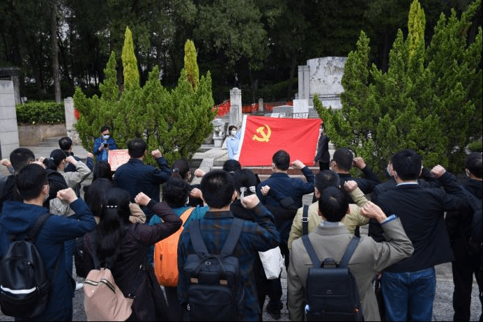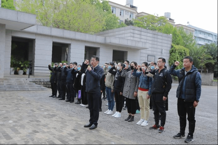 全体人员在“一二·一”运动四烈士墓前默哀,向为祖国捐躯的烈士们致以崇高的敬意,深切缅怀先烈。西南联大博物馆讲解员王齐为全体人员讲授了《“闻一多先生的精神不死”血书》微党课。听完微党课后,面对鲜红的党旗,校党委副书记、校工会主席张玮同志带领参加活动的全体中共党员一起重温入党誓词。