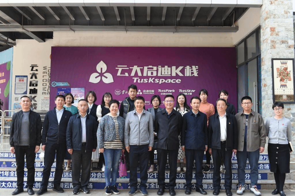王德强校长一行首先参观了云大启迪K栈众创空间孵化器展厅,对孵化器在科技转化、项目孵化等方面所取得的成果进行深入了解。