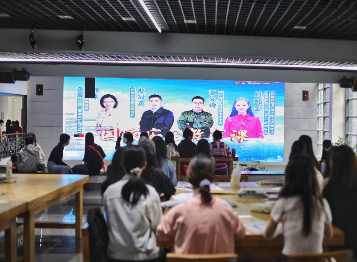 为提高全校师生国家安全意识,营造维护国家安全的浓厚氛围,增强防范和抵御安全风险能力,在第七个全民国家安全教育日到来之际,4月14日下午,我校22个学院(学部)同时开展“千万师生同上一堂国家安全教育课”活动,全校师生以集中收看、自主收看等方式通过在线视频号、微博、B站等直播平台观看了由教育部思想政治工作司、中国大学生在线、腾讯推出的主题公开课。