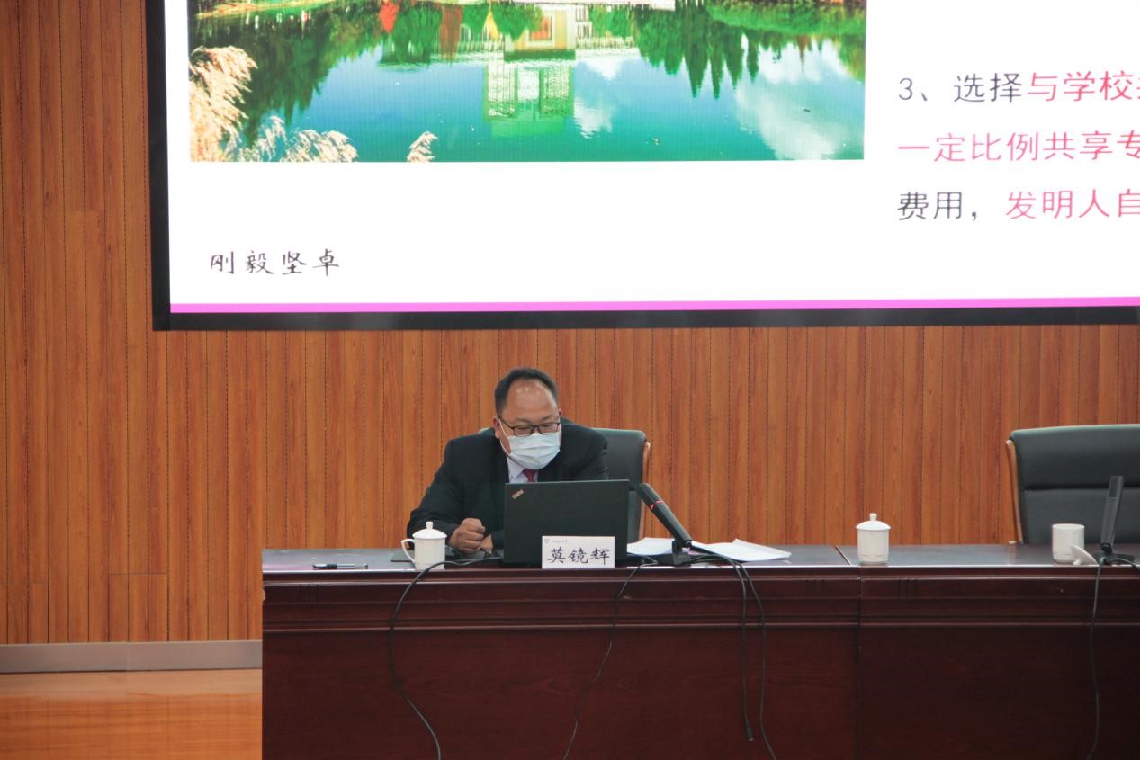 莫镜辉主任解读了《云南师范大学专利管理办法》,从办法制定的背景及目的、制定依据、办法架构等方面进行了介绍,对专利申请前评估、专利所有权分割、专利转化收益分配、专利申请流程等部分作了重点解读,并通报了我校“非正常专利申请”的突出问题。