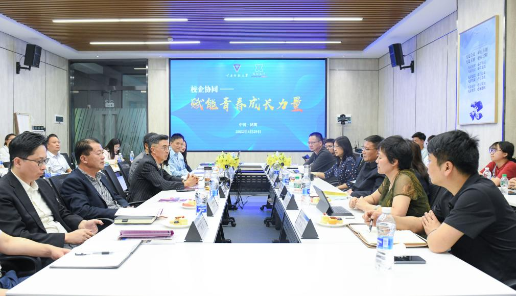2021年星耀集团在我校设立“星耀励学金”,旨在助力学子成长成才,经过层层筛选,我校共30名2021级本科生获得该项资助。基于校企双方良好的前期合作关系,王德强校长一行于4月29日赴星耀集团回访调研,郝淑美副校长、对外合作交流处(校友工作办)、就业处、学生处等相关职能部门负责人参加调研。星耀集团董事长颜语、集团董事长助理刘国成、集团综合管理中心总经理邓悦等出席校企交流座谈会,校企双方携手为青年学子成长赋能。此外,我校获得 “星耀励学金”的2021级“星耀一班”全体同学一同前往,参观学习。