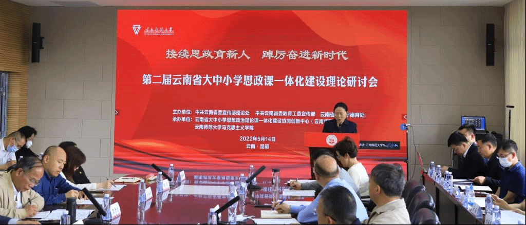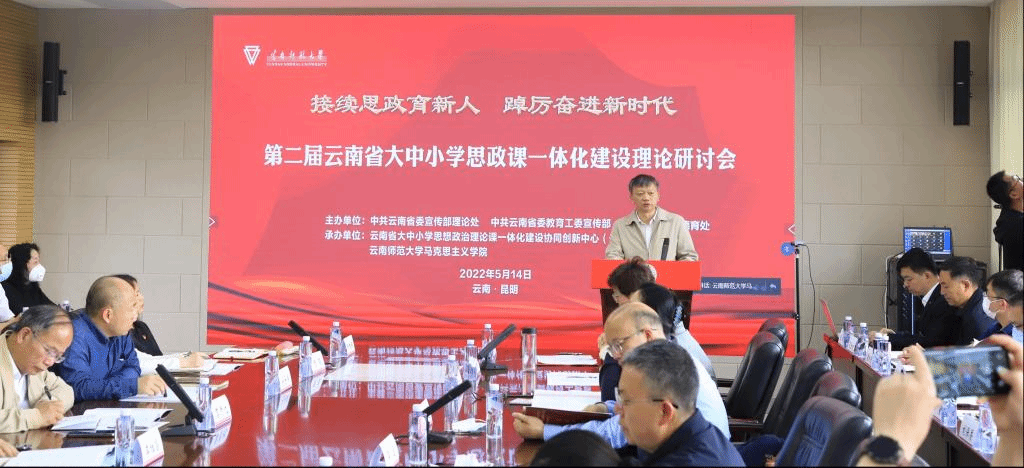 5月14日,由中共云南省委宣传部理论处、中共云南省委教育工委宣传部、云南省教育厅德育处主办,云南省大中小学思想政治理论课一体化建设协同中心(云南师范大学)、云南师范大学承办的第二届云南省大中小学思想政治理论课一体化建设理论研讨会在我校呈贡主校区举行。本次研讨会以“接续思政育新人 踔厉奋进新时代”为主题,旨在深入贯彻落实习近平总书记关于学校思政课建设重要讲话精神和考察调研中国人民大学重要讲话精神,接续推进思政课建设,落实立德树人根本任务、培养时代新人,推动大中小学思政课一体化建设内涵式发展。