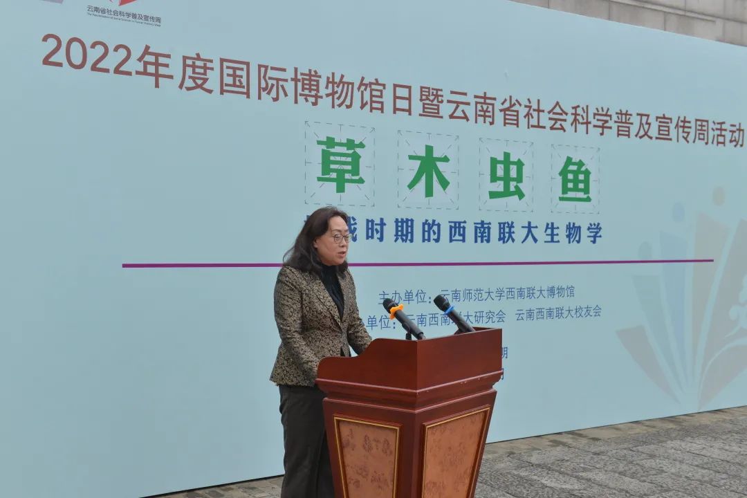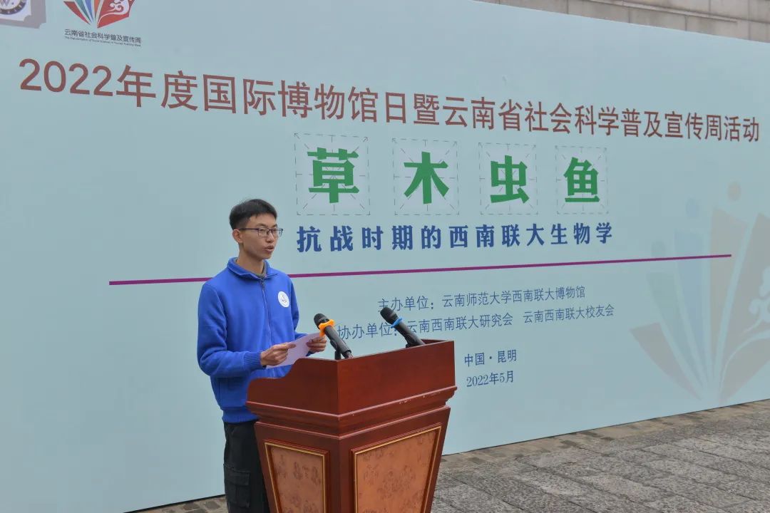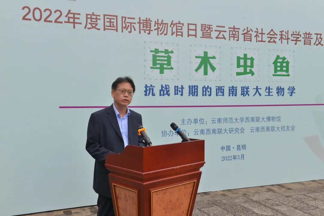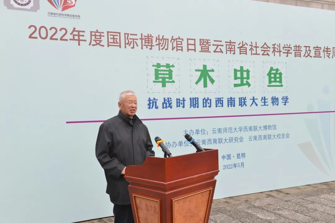 在第46个“国际博物馆日”暨2022年云南省社会科学普及活动宣传周到来之际,为学习贯彻习近平生态文明思想,传承弘扬西南联大立足西南扎实开展科学研究的科学精神,彰显云南在生物科学研究方面的独特价值,进一步开展爱国主义教育、生态文明教育,增强生物多样性保护意识,全面推进生态文明建设,促进人与自然和谐共生,5月18日,由云南师范大学西南联大博物馆(西南联大研究所)主办、云南西南联大研究会、云南西南联大校友会协办的《草木虫鱼——抗战时期的西南联大生物学》专题展开展仪式在云南省社科普及示范基地西南联大旧址举行。