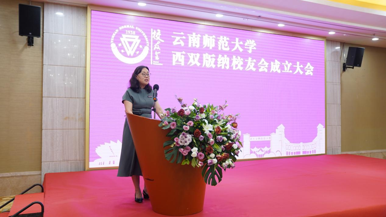 郝淑美副校长在大会上致辞,她表示,一直以来,广大西双版纳校友秉承着母校“刚毅坚卓”的校训,在建设伟大祖国的奋斗征程中,在助力版纳教育、经济和社会发展的历程中做出了卓越的贡献。为了更好地凝聚校友、服务校友,云南师范大学校友会同意成立西双版纳校友分会,旨在团结带领广大版纳校友弘扬“刚毅坚卓”的精神,激发校友热情,汇聚校友才智,为地方社会经济发展做出积极贡献。