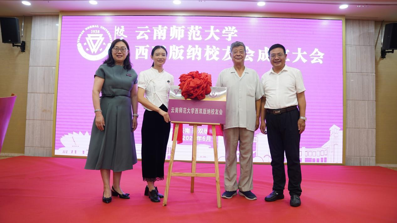 赵家信副州长、郝淑美副校长共同为云南师范大学西双版纳校友会揭牌。