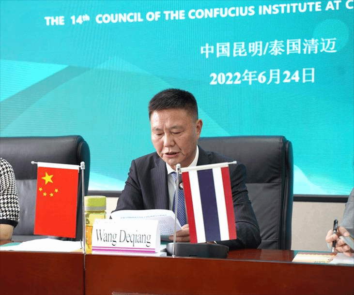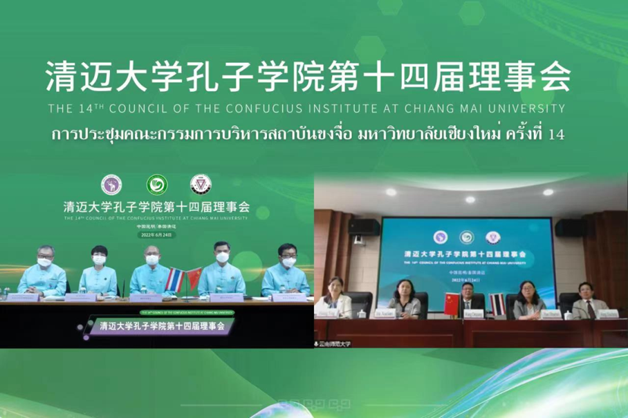 2022年6月24日下午,清迈大学孔子学院第十四届理事会以网络视频会议方式在我校呈贡校区行政楼召开。云南师范大学校长王德强、副校长郝淑美、华文学院党委书记和雪莲、院长王秀成、对外合作交流处处长黄瑛、清迈大学孔子学院中方院长连晨作为中方理事参会;清迈大学校长尼维、副校长彭拉、副校长龙姆、清迈大学孔子学院泰方院长马如宝作为泰方理事参会。会议由清迈大学副校长龙姆主持。